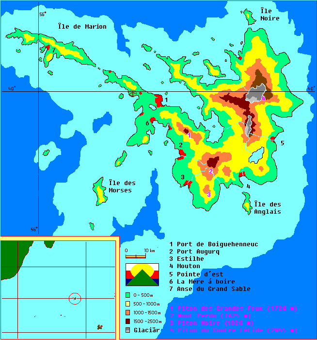 zuidoostelijk van Zuid Afrika. Het is een geïsoleerd,